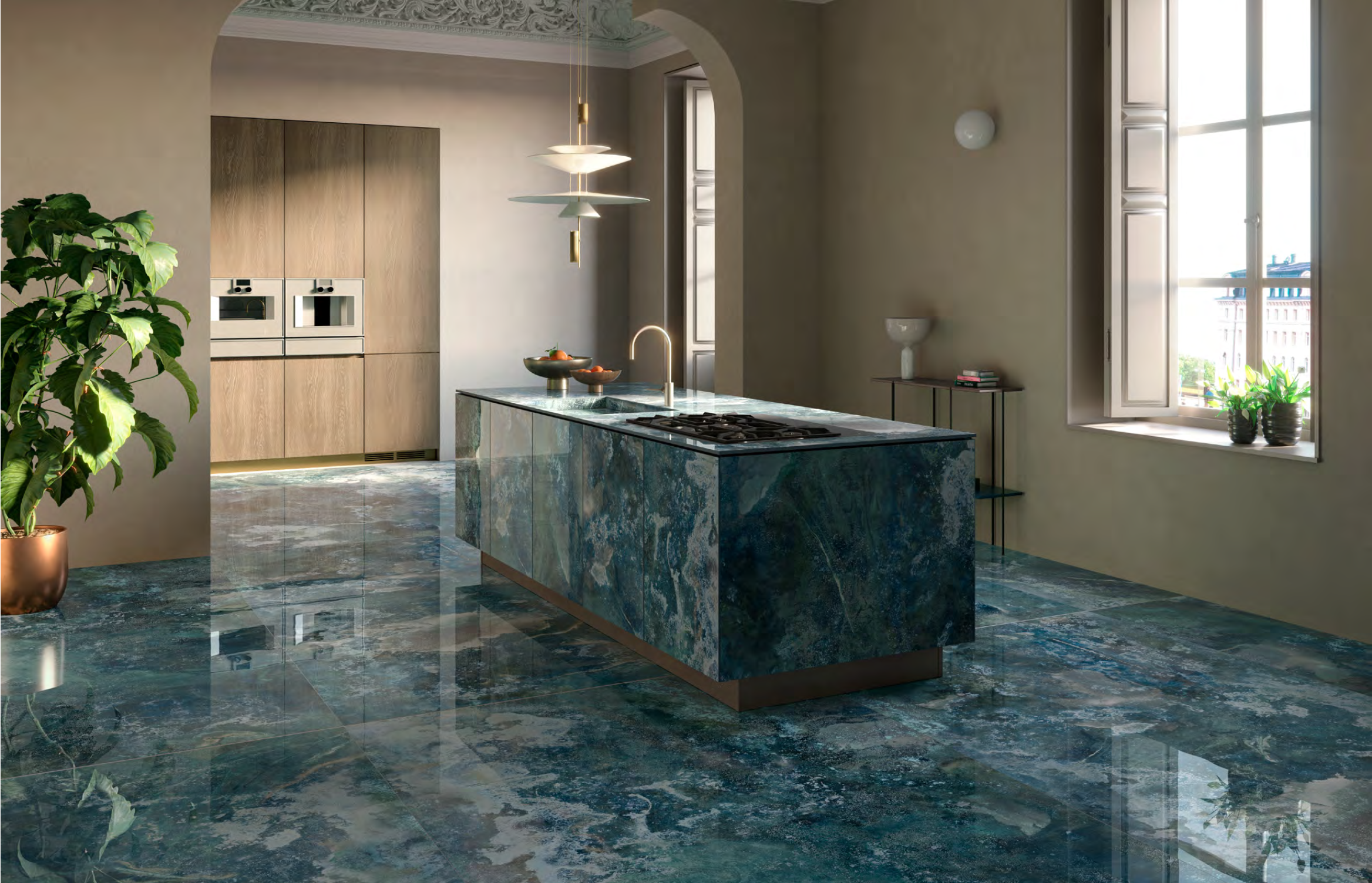 Lấy cảm hứng từ những gam màu xanh ngọc sâu thẳm và năng lượng bí ẩn của vũ trụ, bộ sưu tập COSMIC – OTTANIO của Vasta là một sự kết hợp đầy tinh tế giữa thiên nhiên và nghệ thuật. Với tên gọi “Ottanio” (tiếng Ý nghĩa là xanh ngọc, màu lam pha xanh lục), dòng đá này nổi bật với những đường vân màu xanh ngọc, đen và xám đan xen, tái hiện lại vẻ đẹp lộng lẫy và bí ẩn của các vì sao và tinh vân. COSMIC – OTTANIO không chỉ là một vật liệu ốp lát mà còn là một tuyên ngôn về phong cách, mang đến sự sang trọng, thanh lịch và đầy cá tính cho không gian sống.