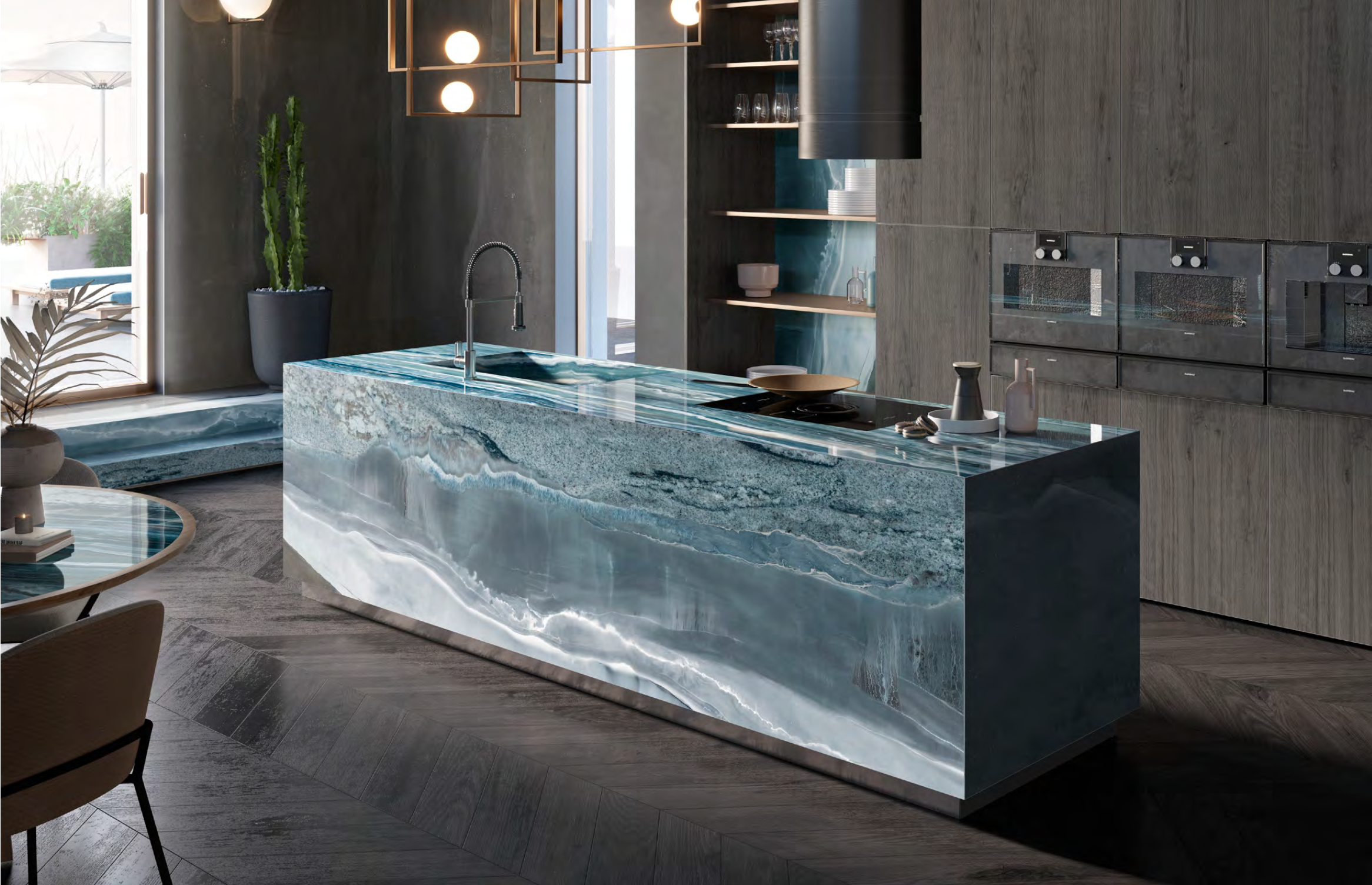 Vẻ đẹp tự nhiên và độ bền cao làm cho đá ICELAND trở thành lựa chọn hoàn hảo, mang lại sự sang trọng và ấm cúng cho không gian bếp.